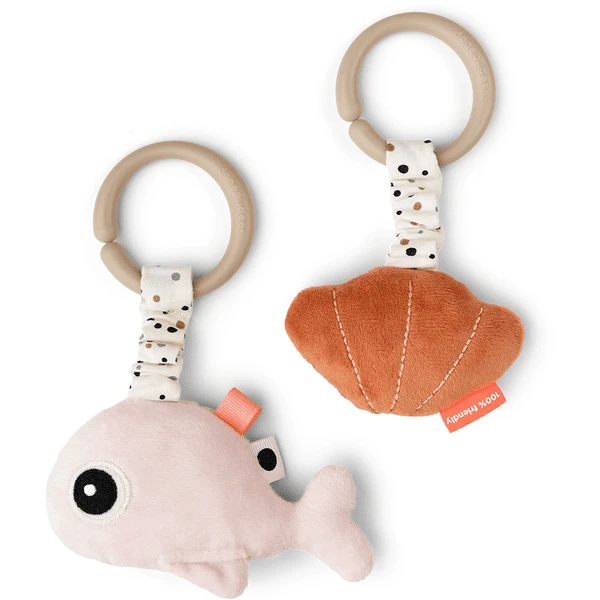- Beide Spielzeuge haben viele Etiketten zu entdecken und lassen sich mit einem Universalring befestigen