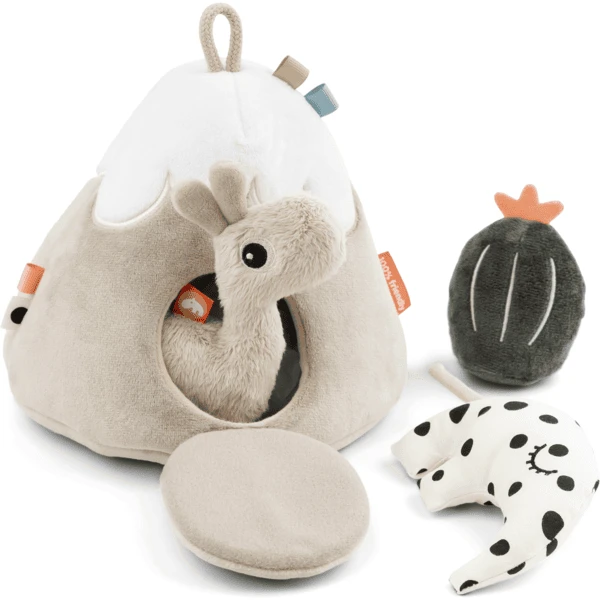 Activity-Spielzeuge sind in einem sanften Beige, Blau und Grün mit einigen